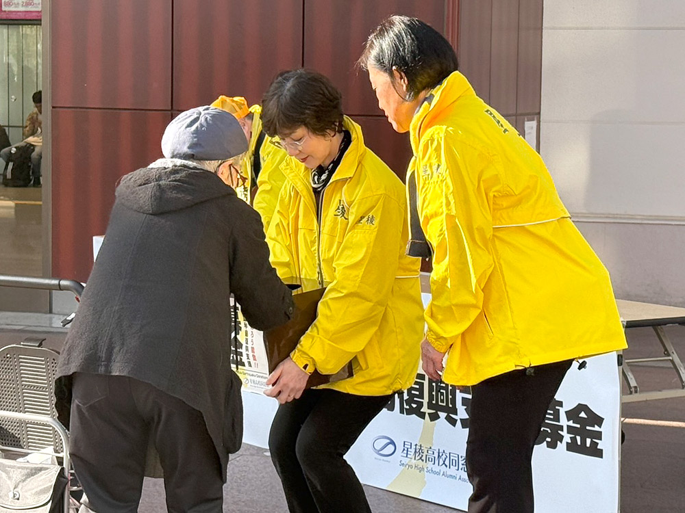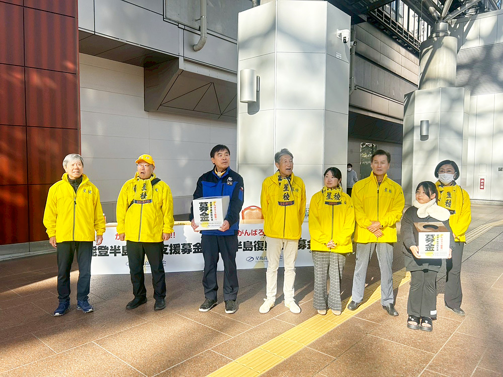 12月20日(土)金沢駅東口にて、昨年に引き続き「がんばろう能登!!能登半島復興支援募金」活動を同窓会メンバー14名が交代しながら、途中、星稜高校同窓生である馳石川県知事、鍋谷校長も加わり9時30分~18時まで行いました。